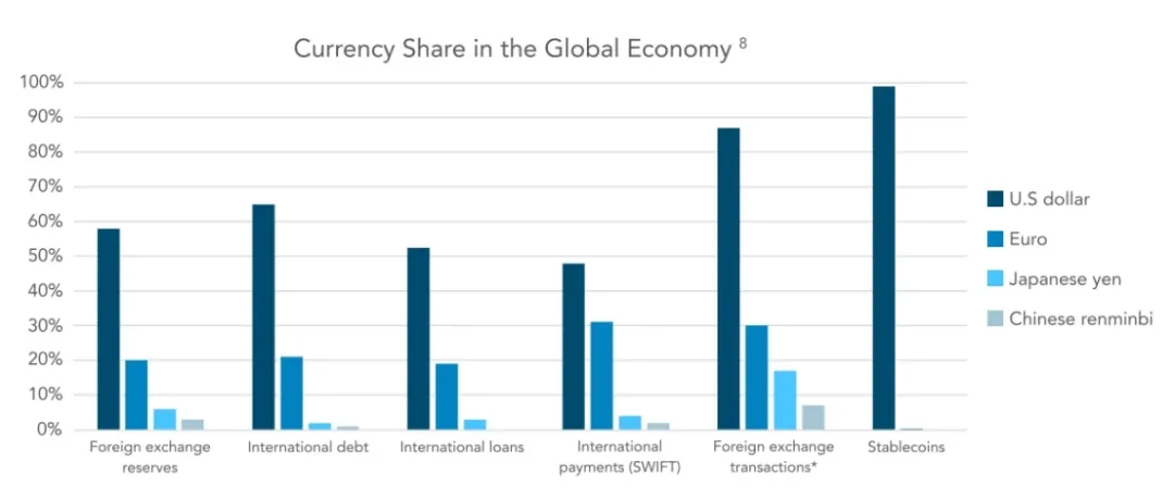 为什么稳定币如此压倒性地美元化仍然是一个有趣的问题。美元是全球储备货币,但在其他任何使用类别中,美元都没有像稳定币那样占据主导地位。
