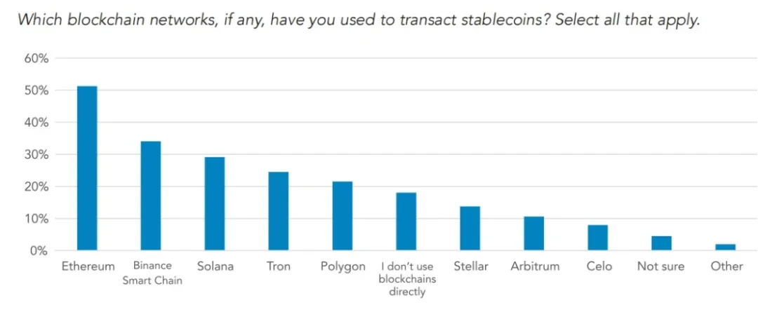 以太坊是抽样用户中最受欢迎的区块链,其次是 BSC、Solana 和 Tron;