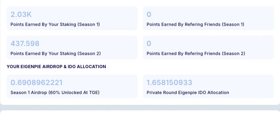 然而,多名社区成员反馈称,在参与第 1 季质押活动时仅获得少量代币。 根据官方 Discord 中的社区反馈,早期参与者质押了近半年的 LST 相关资产,却仅获得少量代币,有成员反馈称质押了约 1 枚 ETH 价值的 LST 资产 3 至 4 个月,查询仅获得 1.5 枚代币)。此外,TGE 仅解锁了 60% 的代币,剩余的空投代币还需等待半年才能释放。
