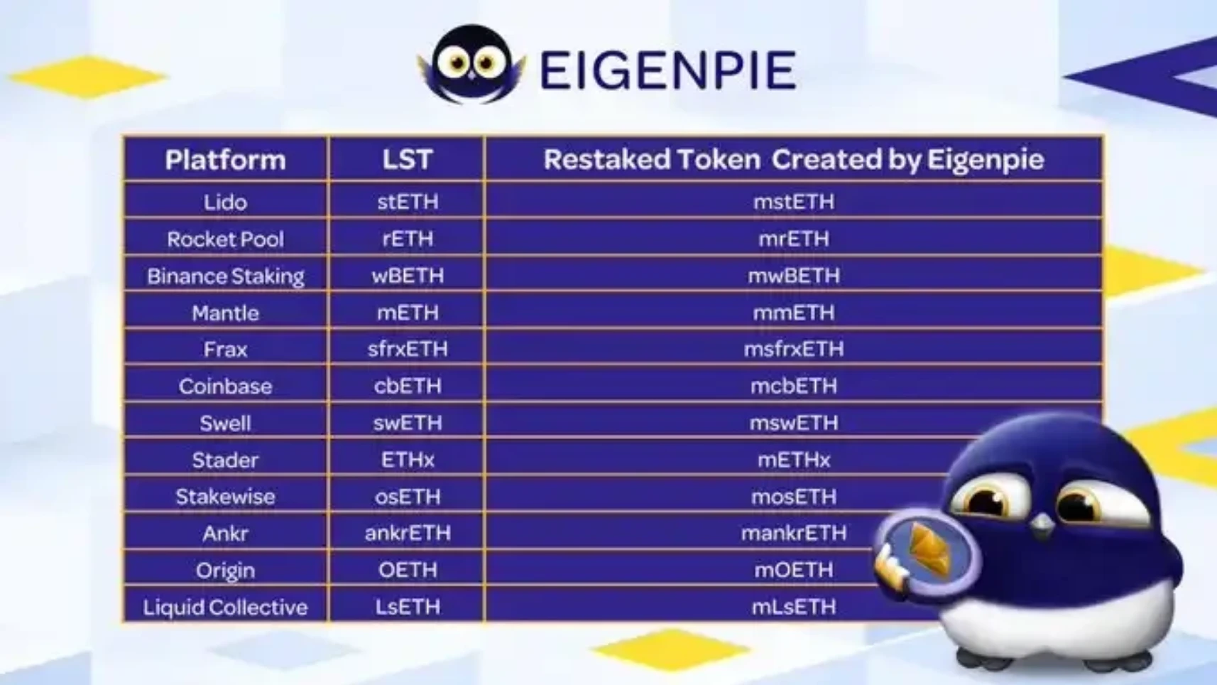 Eigenpie 是一个以太坊流动性再质押协议,它为 Liquid Staking Token 持有者提供了再质押资产和扩大盈利潜力的机会。通过为平台上接受的每个 LST 创建专用的流动再质押版本,Eigenpie 有效地隔离了与任何特定 LST 相关的风险。