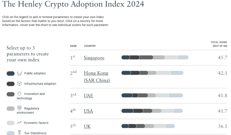 图 4 :新加坡在整体加密货币采用方面处于领先地位,来源:Henley & Partners