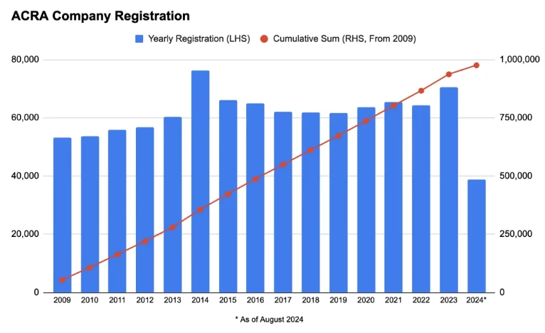 图 2 :新加坡注册企业数量一直在增长,来源:ACRA via data.gov.sg