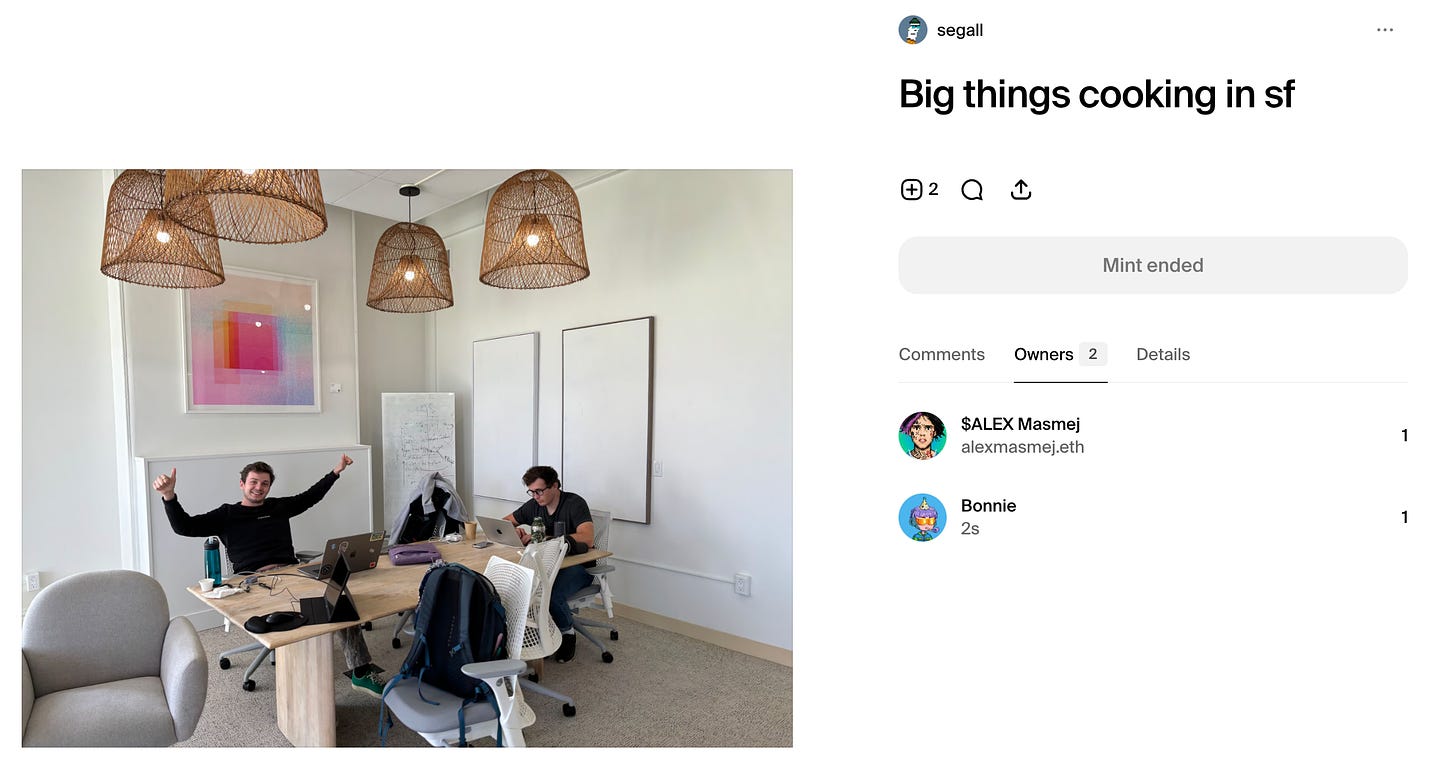 虽然他们是少数,但像 Privy 的 Max Segall 这样的用户更像是在将 Rodeo 用作 Instagram。这些帖子没有数十个铸造(mints),他们也不需要这样做,或者说并不一定是为了这个目的。
