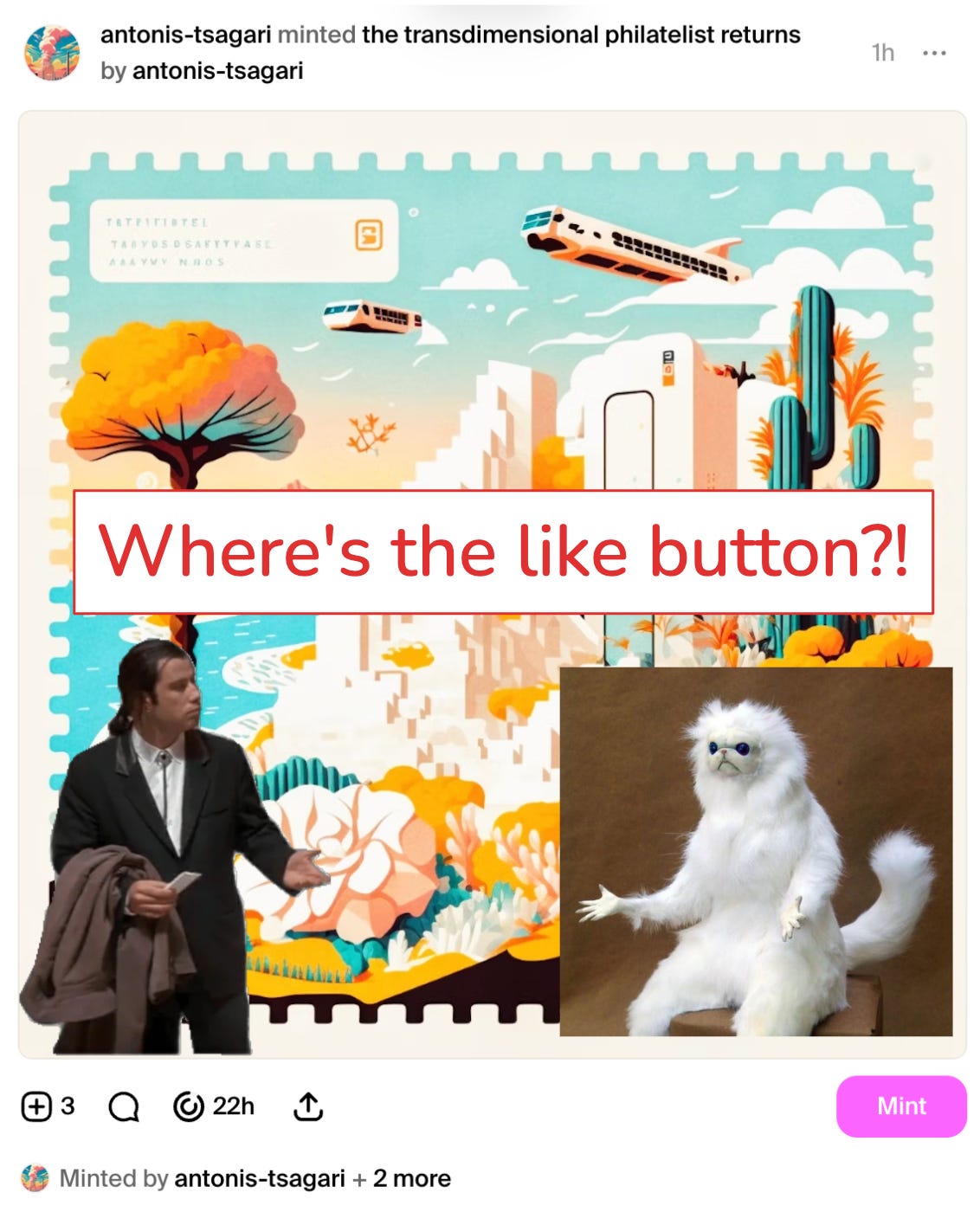 点赞按钮被铸造按钮取代。如果你真的喜欢这条内容,你可以以大约 25 美分的低价进行铸造,从而创造一个共赢局面: