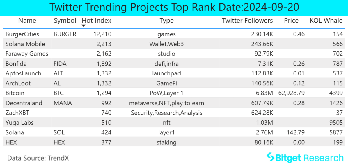 (2)欧美地区的热搜分散,主要关注近期涨势非常好的项目,其中包括:FIDA、FTM、GALA、AERO 等项目;