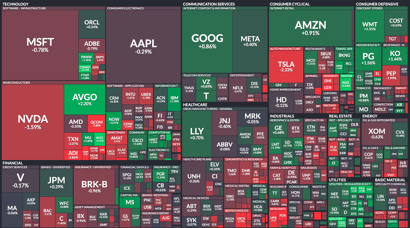 - S&P 500 指数下跌 11.09 点,或 0.19%,收 5,702.55 点
