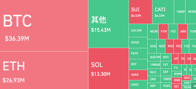 虽然这次的爆仓数据不算特别严重,但从爆仓热力图可以发现,除了 BTC、ETH 和 SOL 等主流代币是以空单爆仓为主,其他小眾代币几乎都是多单爆仓为主。
