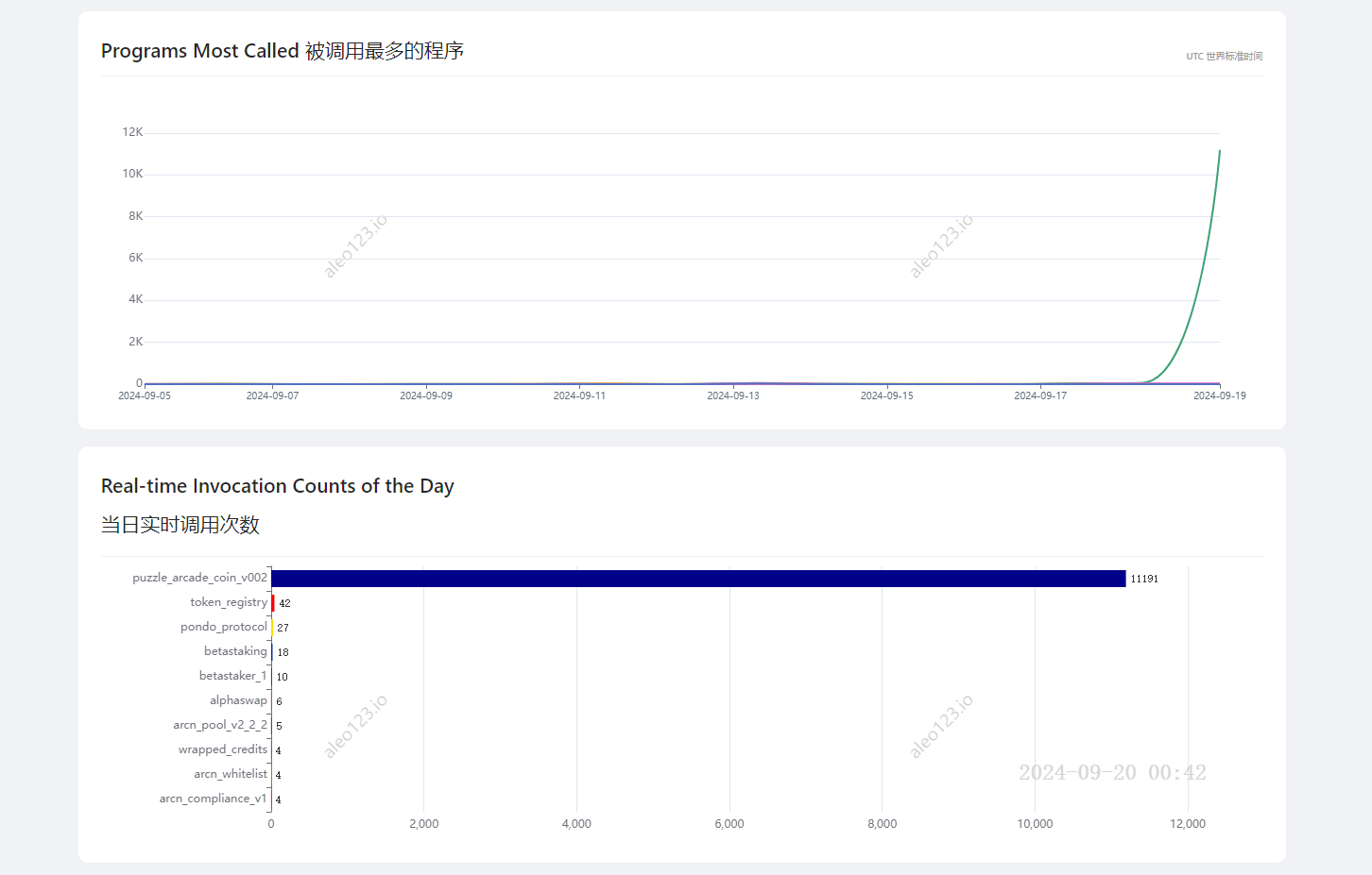 Puzzle 钱包是 Aleo 上被调用最多的程序,9 月 19 日 Puzzle 被调用的次数超过 1 万次,实现了爆发式增长。从时间节点来看,这可能源于 Aleo 在 9 月 18 日宣布可以通过 Puzzle 钱包申领空投代币。在此之前,Aleo 上的程序单日被调用的次数不超过 100。据 Puzzle 官方宣传,该钱包目前已有超过 3 万用户。