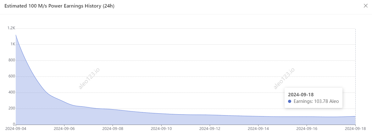 从挖矿收益的变化来看,在代币经济学公布之前,Aleo 的挖矿难度呈指数型上升,随着代币经济学公布后,或许是不少矿工退出的缘故,挖矿难度开始下降。