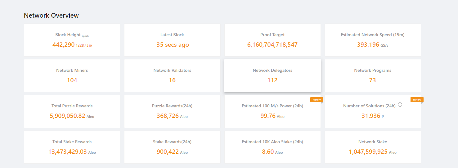 由于 Aleo 官方数据平台并不显示具体的钱包地址数和每日交易情况,具体 Aleo 的生态活跃度也就无法通过直接的数据验证。只能通过一些其他数据对 Aleo 的生态发展情况进行推测。