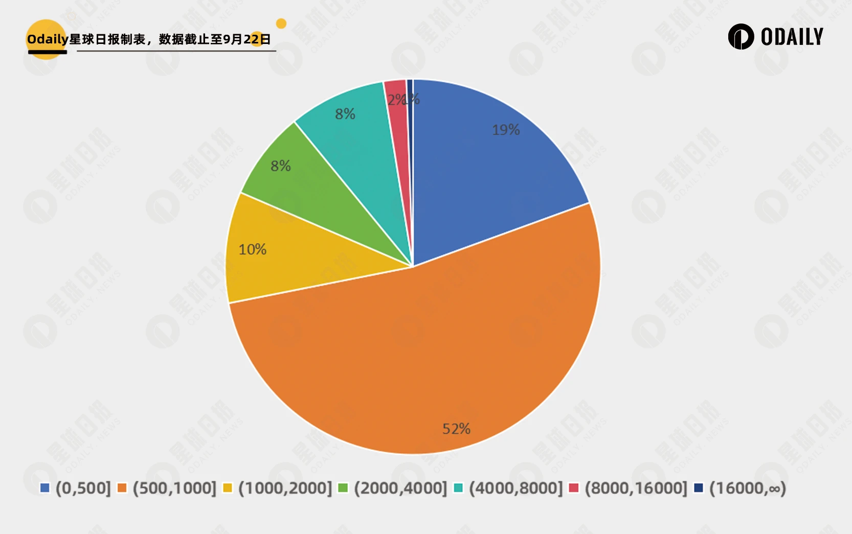 基本积分达到 900 分的地址共有 890 个(占比 55.2% ),其次为 300 分共 203 个(占比 12.6% ),前三名分别为 127200 分、 32000 分、 24000 分。平均分为 1018 分。