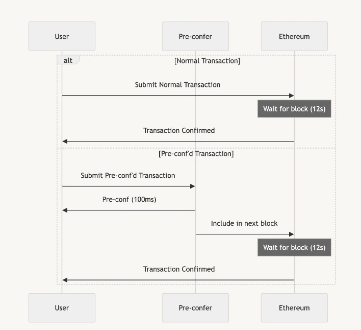 这一举措不仅大幅提高了交易速度和用户体验,还无需更改以太坊的核心协议,某种程度上讲,Based Rollup 与预确认(Preconfs)恰似一币两面—— 如果要充分发挥 Based Rollup 的潜力,就必须实现无需许可、中立且灵活的预确认服务。