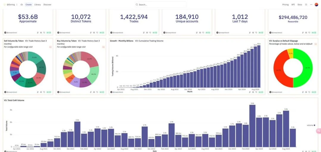 查看以上 4 个实例的 Dune 数据看板,我们会发现 Cowswap 数据表现一枝独秀,Renzo 的「Restake from Anywhere」表现相对亮眼,DappOS、EverClear 的链上数据目前表现相对一般。