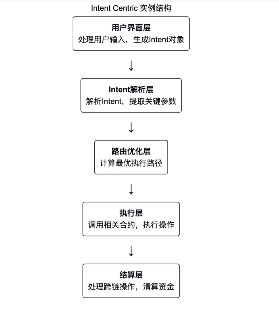 本质上, Intent Centric 原语是一种将用户意图抽象化、将复杂执行逻辑封装的计算范式。它通过引入意图层 (Intent Layer) 作为中间抽象层,实现了用户需求与底层执行的解耦。