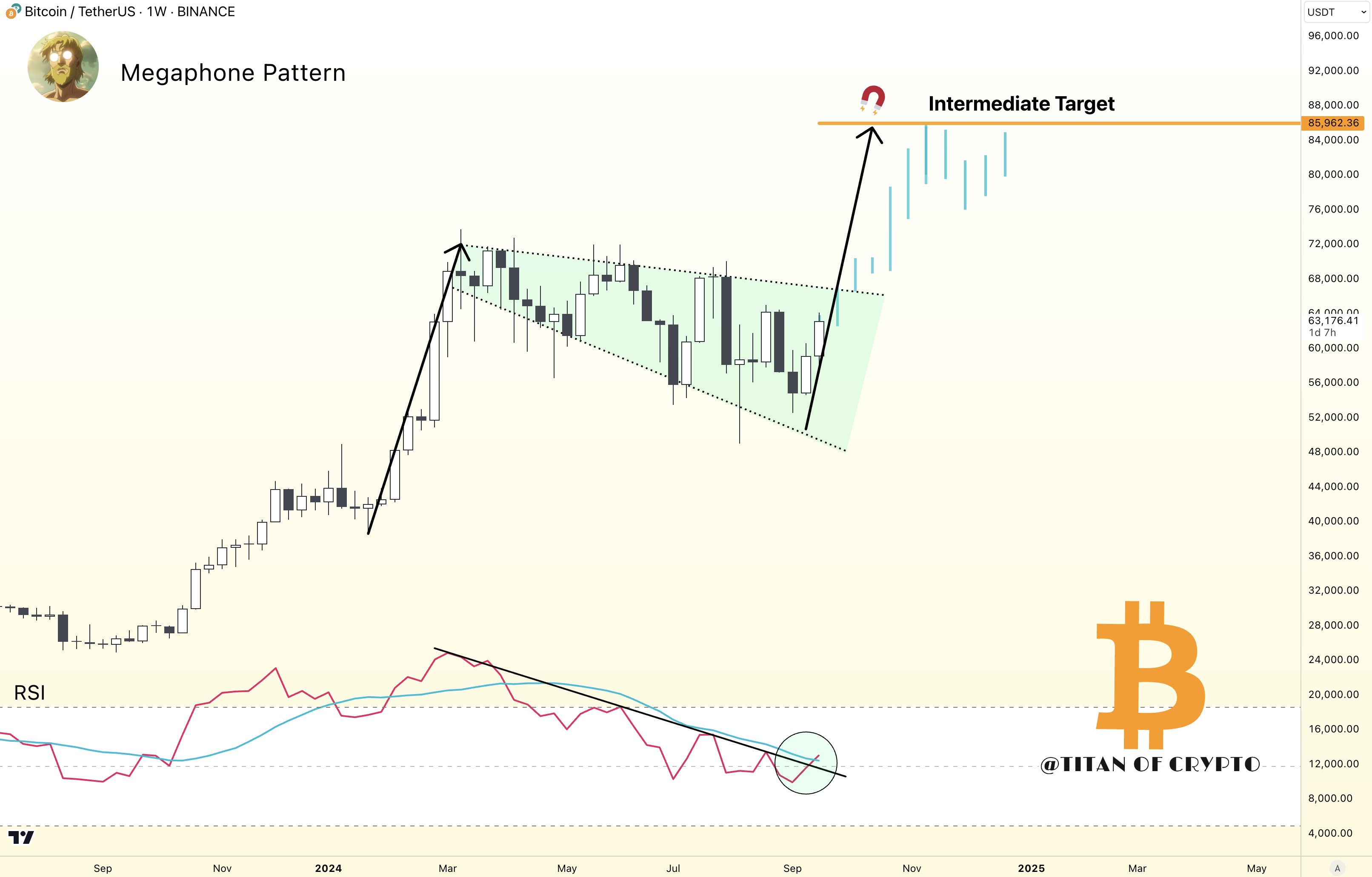 随著市场似乎受到联準会降息激励,知名交易员分析师 Titan of Crypto 周末在 X 平台上表示看涨 观点 ,表示比特币价格有望在今年年底前上涨约 35%,并将中期目标设定为 85,000 美元。他指出:
