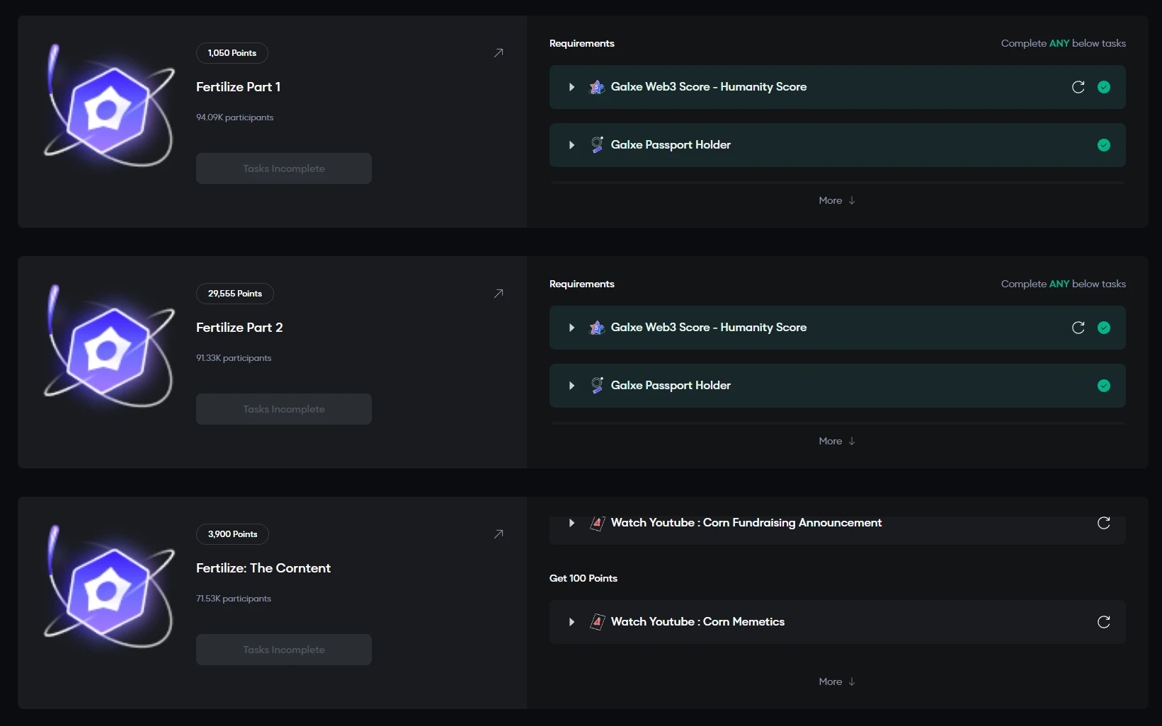 本次 Corn 在 Galxe 上更新了很多任务,大部分为设计类、访问网页类任务,操作简单,可分批完成。