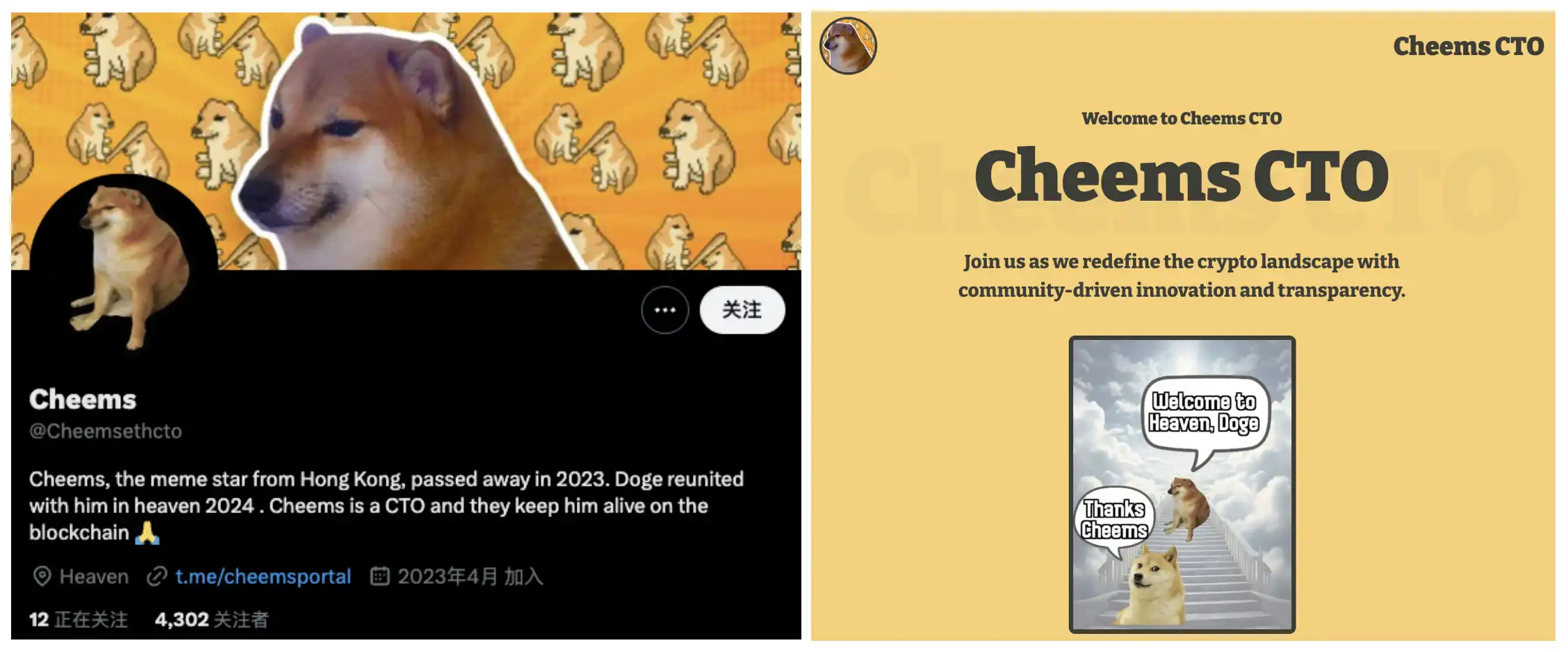 Cheems 是一只自带嘲讽 buff 的柴犬,因表情生动而在众多迷因出现。Cheems 的流行最早可以追溯至 2017 年 9 月 4 号,那天家人发布了一张照片,它从此流行于网络,为人所熟知的还有它喜欢的芝士汉堡(Cheemshamburg)。