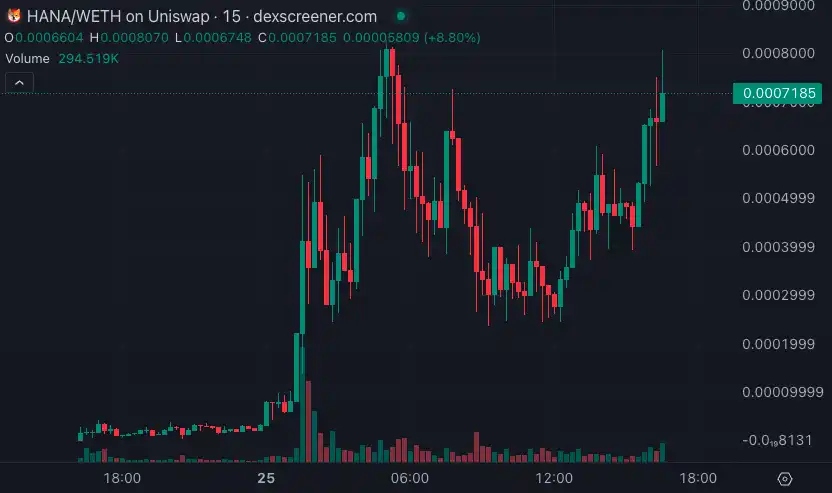 HANA 是网传 SHIBA Inu 原型宠物的名字,$SHIB 作为经典狗狗 meme,市值如今已突破 80 亿美元,而 HANA 作为 SHIB 的「原型狗」,被不少 KOL 称为「SHIB 的继承者」。@Mirro 7777 在 X 上表示$HANA 代币出自「阴谋集团」,且吸取了此前 DOGGO 操盘失败的经验,盘内留有一些内幕地址。