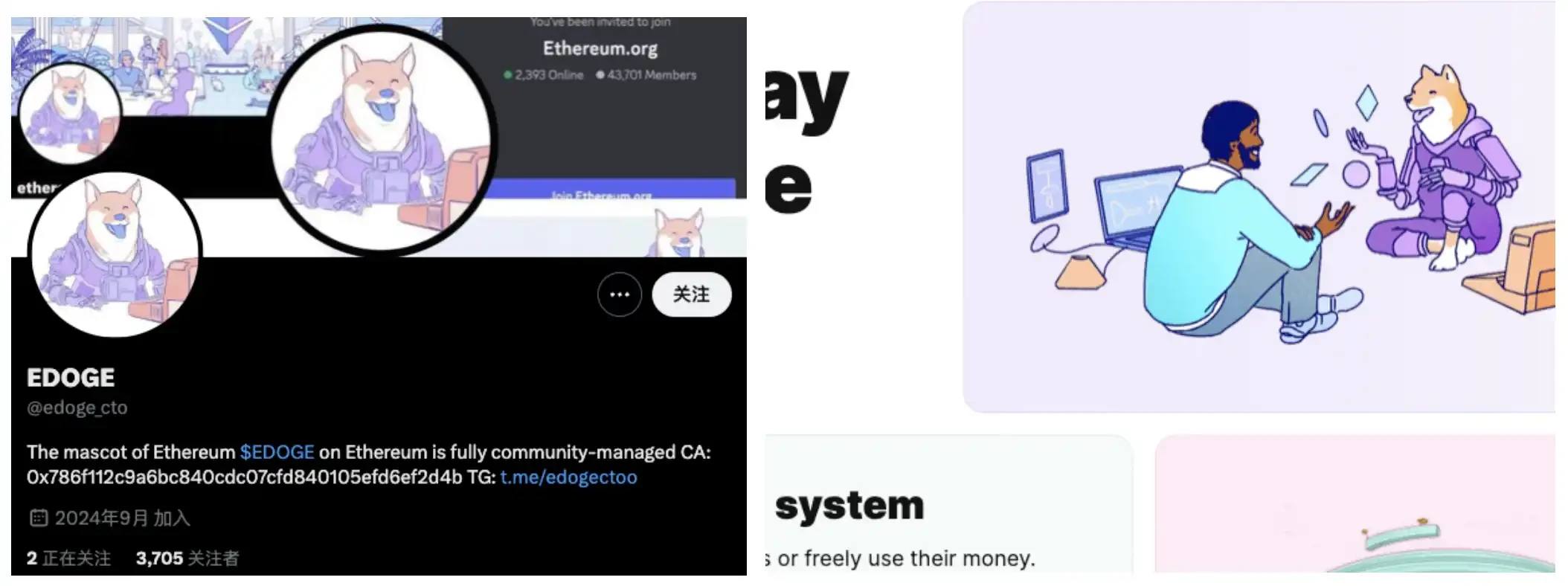 $EDOGE 概念来自以太坊官网(ethereum.org)上的一只宇航员狗狗,它在网站的各个页面中经常出现,因此被社区视为以太坊「官方网站的吉祥物」。但 @0x Bit 90536646 在推特上表示,$EDOGE 代币在代码层面留有卖出数量限制、最大交易额和最大持仓可改、交易税可改、可以设置白名单和黑名单等诸多后门。