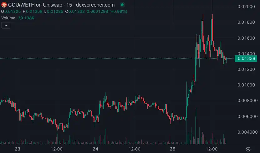 据社区成员表示,$GOU 是由 Neiro 社区鲸鱼与海外 KOL 联合打造的狗狗 meme,代币 Ticker 是汉字「狗」的汉语拼音,与大部分狗狗 meme 显著不同的是,$GOU 的推特账号运营显得更加「专业」和「上档次」,过去几天接连举办了多场推特 Space。
