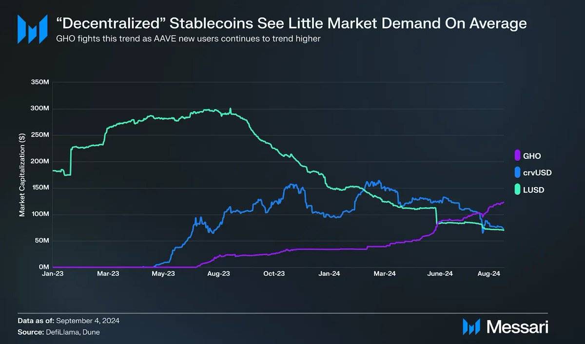 历史上,专注于最大化去中心化和最小化人工干预的稳定币需求并不高。GHO 可能是个例外,因为它依托于 AAVE 上已经增长的活跃用户: