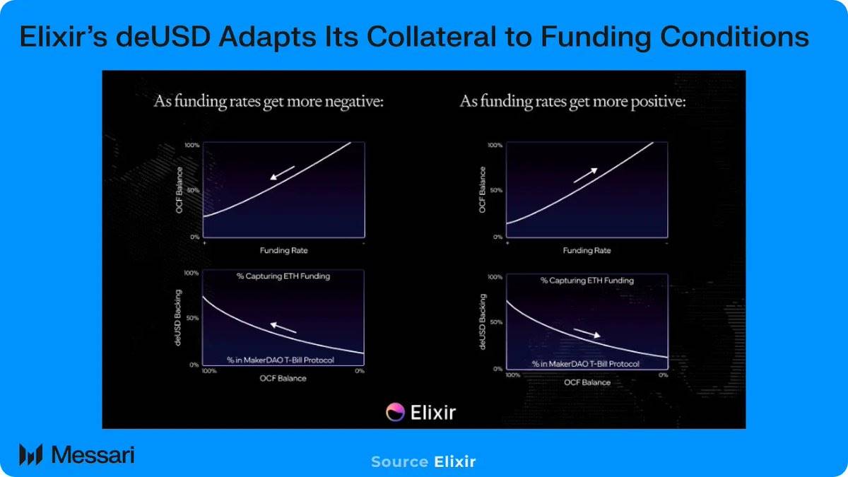 合成稳定币如 USDe 通过同时持有长期现货和短期期货头寸来维持其锚定。随着基差缩小,USDe 失去了市场份额。但像 Elixir 这样的新协议旨在通过调整其抵押品支持来改进 Ethena 模型: