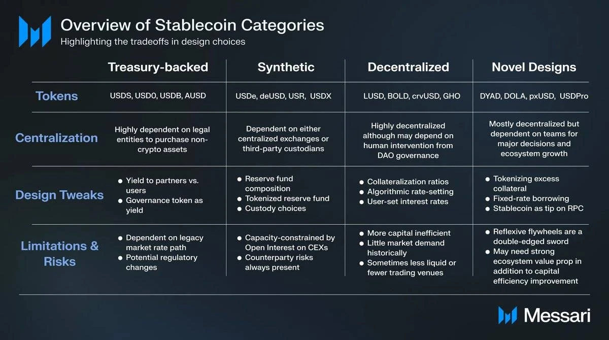 这些类别的新稳定币在收益、可访问性、流动性、稳定性和资本效率等方面展开竞争。而新设计或对旧设计的调整则会做出不同的权衡: