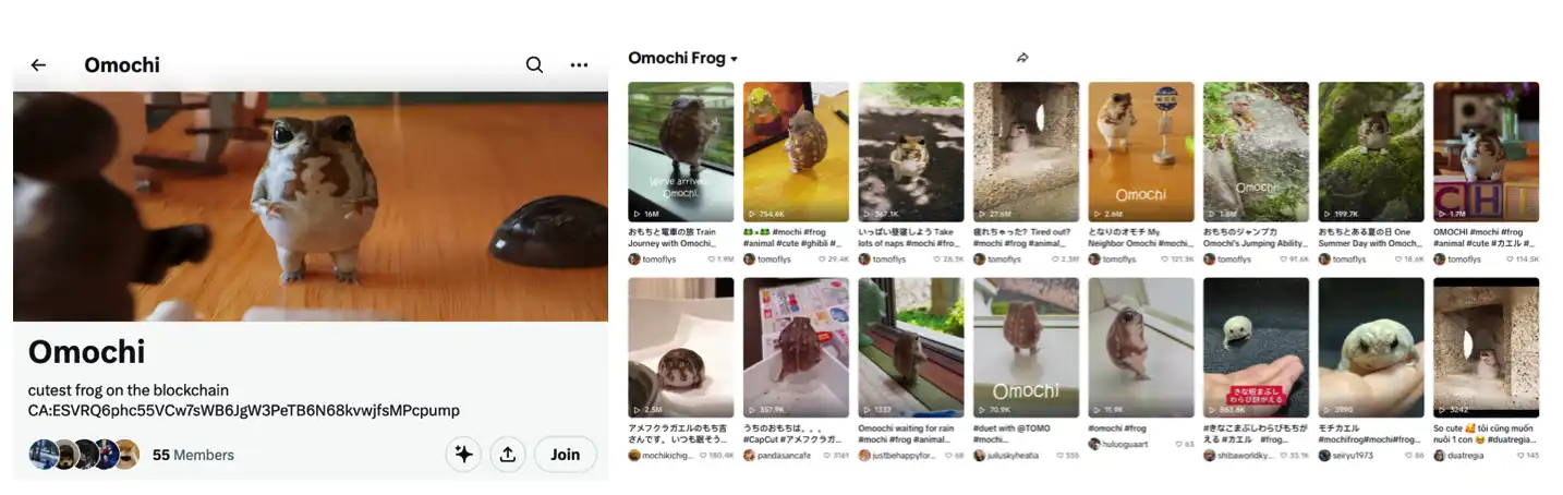 Omochi 也是 Tiktok 上一只广受欢迎的小青蛙,它在 Tiktok 上有 42 万个关注者,数条短视频浏览量超过千万次。