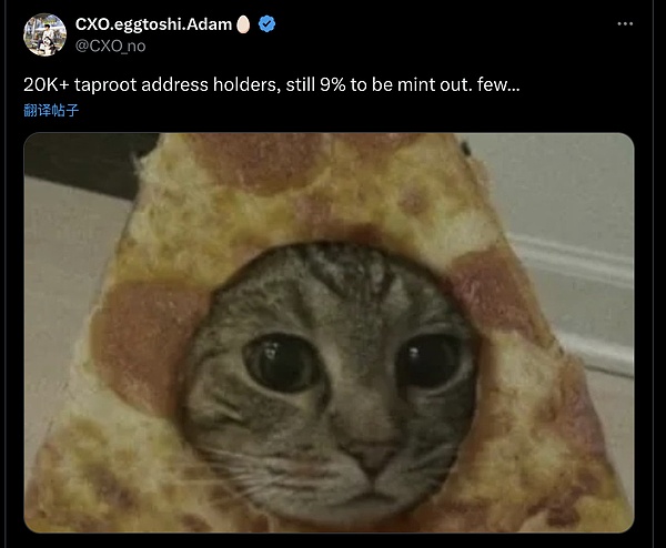 - 披萨猫(cat 20 _pizza)mint 地址突破 2 万,仅次于 CAT,目前进度 95%