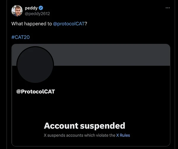 - Cat 20 Protocol 账号被封,市场价格却大涨,市场认为此事件不影响
