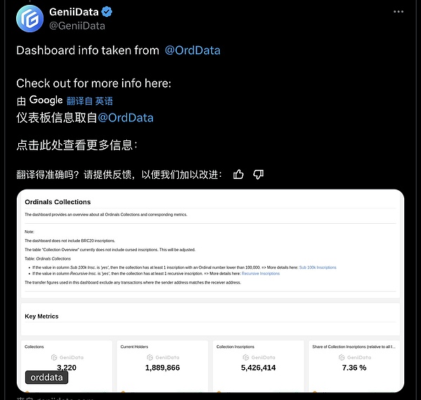 Ordinals 正在经历一个重新觉醒的时期。流动性正在注入 Ordinals,每个人都喜欢这种激增。Geniidata@GeniiData 数据看板 by @OrdData