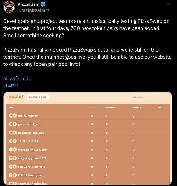- PizzaFarm 已完全索引 PizzaSwap 的数据