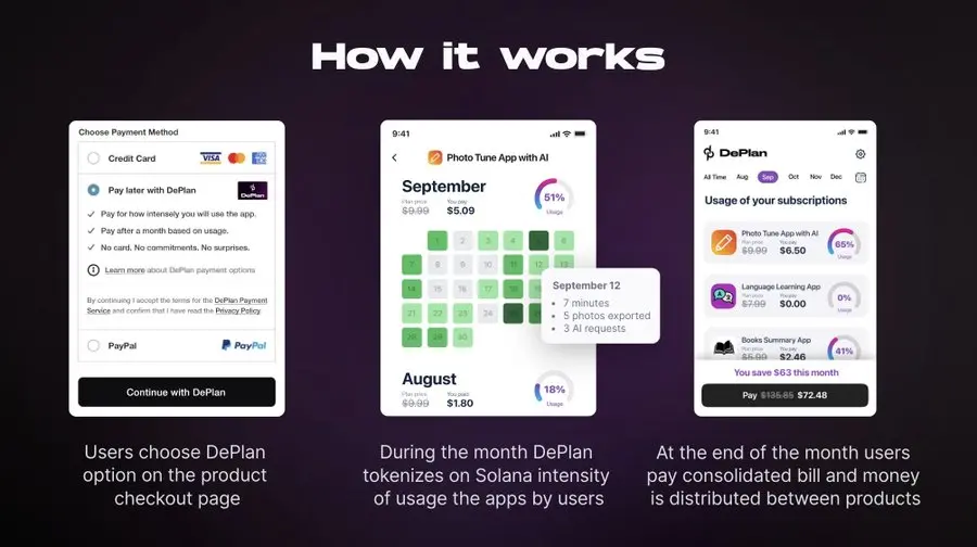 从 DePlan 的官方介绍来看,Solana 上推出 DePlan 2.0 目的是解决传统订阅制的痛点。它支持根据使用强度来支付,以及先用后付。