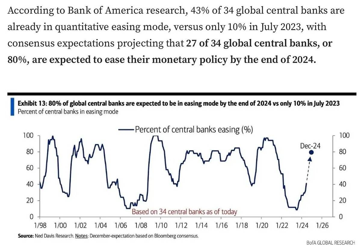 已有 43% 的中央银行开始实施宽松政策,流动性正在增加。