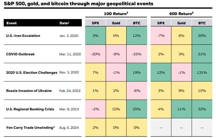 在重大事件发生时,BTC 通常对短期不确定性有负面反应。