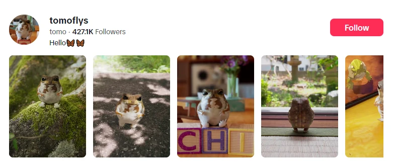 来源:TikTok 网红青蛙,相关账号 tomoflys 拥有 42 万个关注者,获超 2000 万次点赞。