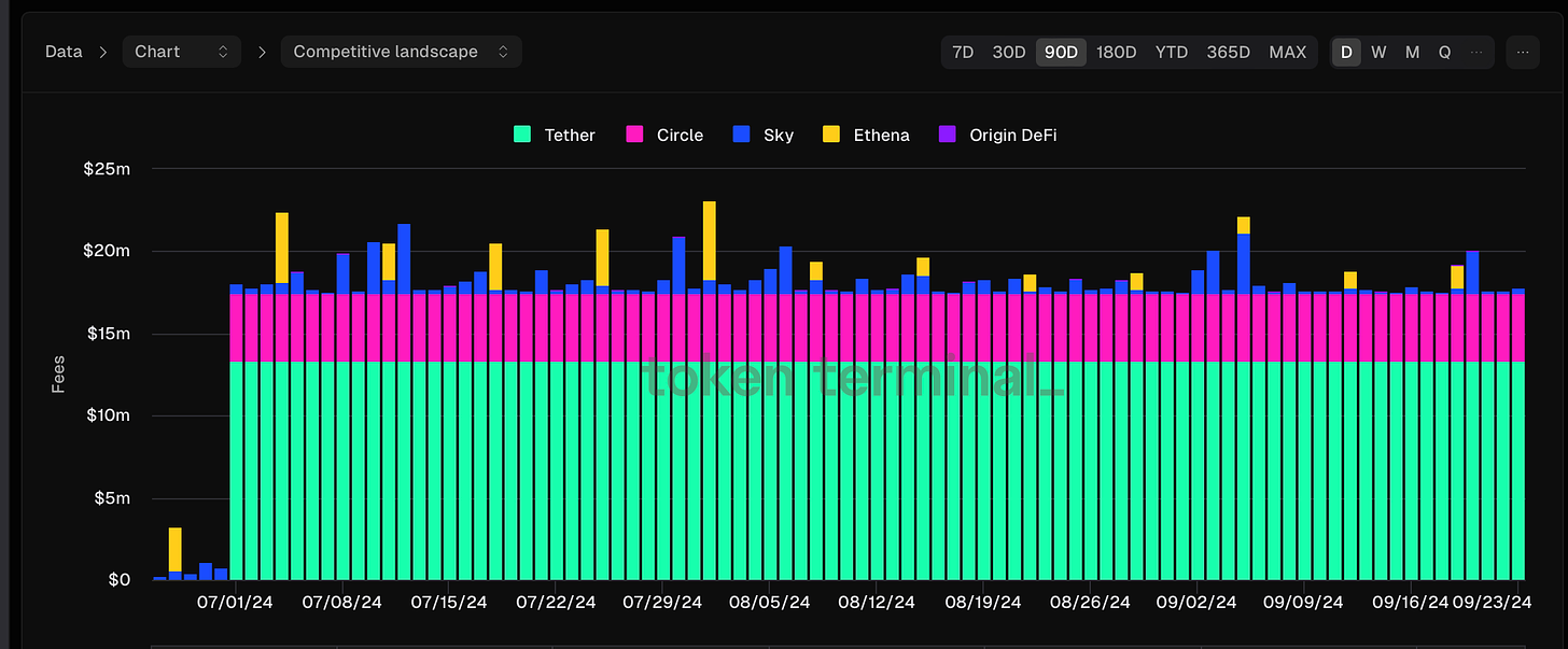 Tether 和 Circle 始终优于其他稳定币提供商和区块链协议,掌握着 Web3 中最大的市场份额。它们的稳定性、流动性以及在多个链和去中心化应用(dApps,Decentralized Applications)中的整合使它们与众不同,成为该领域的重要组成部分。