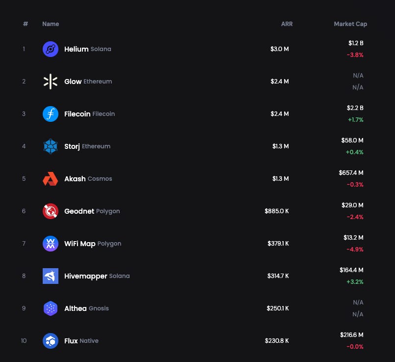 根据 depin.ninja 的统计,Helium 在近期收入生成方面排名第一。他们做了一些令人惊叹的工作,随着 2025 年减半的到来,观察收入如何上升将会很有趣。
