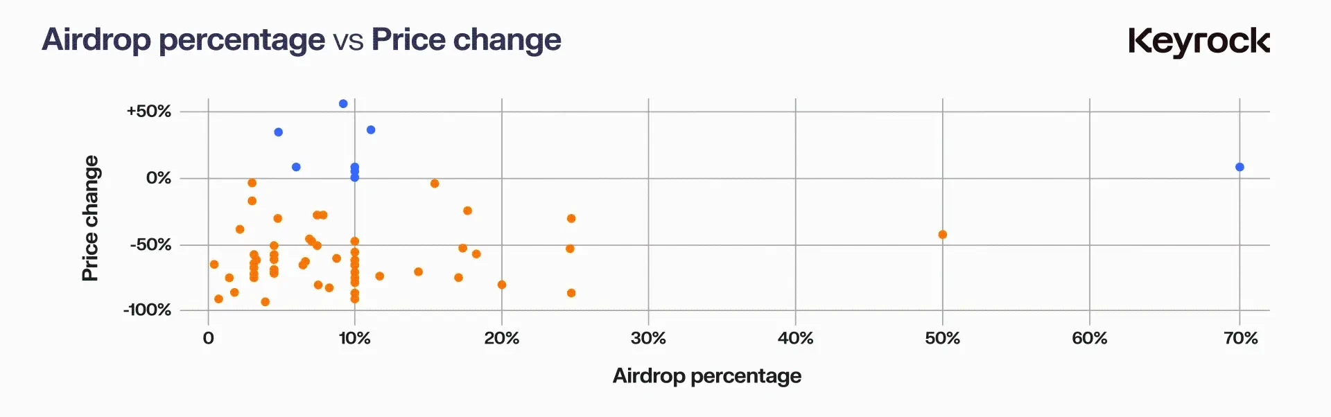 分发超过总供应量 10% 的空投看到了更强大的社区保留和表现。那些低于 5% 的通常在发布后面临快速抛售。