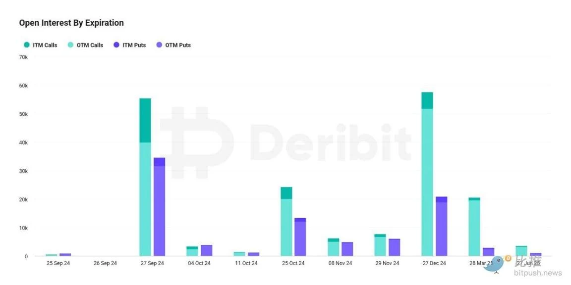20% 的比特币期权处于价内,这意味着更大的到期日「可能会随着交易员平仓或展期头寸而加剧市场波动或活动,这也可能影响价格,」Deribit 首席执行官 Luke Strijers 表示。