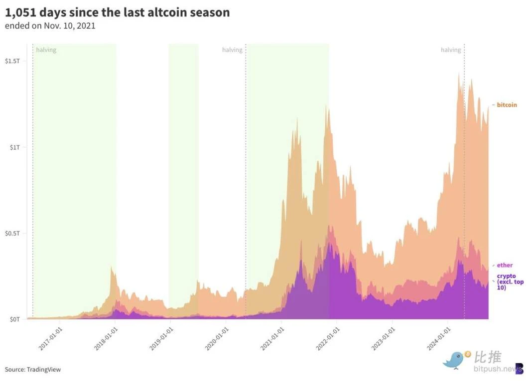 熊市人士会说,在牛市结束之前,山寨币季节不会到来。