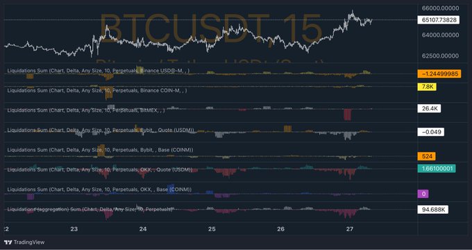 @Xbt886 从订单薄中发现,66,000 至 66,700 美元 有大量卖单,62,000 美元至 63,000 美元有大量买单,整体看涨,可以期待回调,但是也有可能仅为挂单吸引,不会实际成交,不要盲目奔着 62,000 美元至 63,000 美元做空,目前看来获取空头流动性后追高的已经被套,后续还是以保守观察为主。