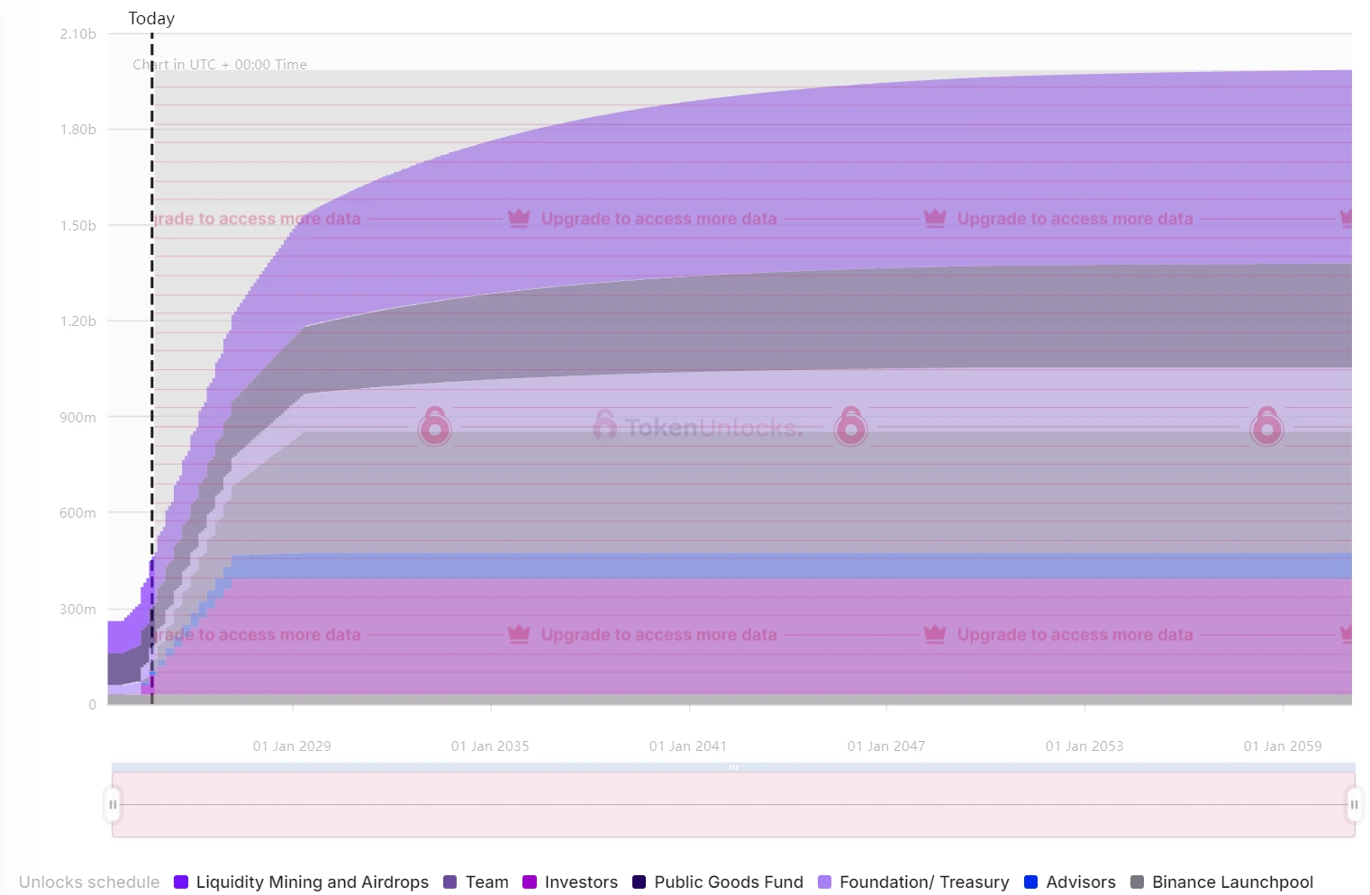 ZETA 正处于高速释放期间,主要面向核心贡献者和顾问解锁,分别为 2626 万枚(1849 万美元)和 1867 万枚(1315 万美元),其他金额包括生态增长 370 万美元、用户增长 185 万美元、流动性激励 77 万美元。