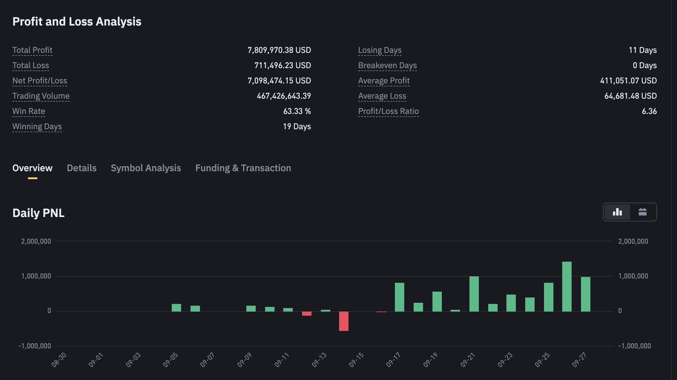 另一方面,X 上有破 7 万人追踪的交易员 Eugene Ng Ah Sio,稍早也 发布 9 月阶段性交易总结,晒出他在本月获利 19 日、亏损 11 日。
