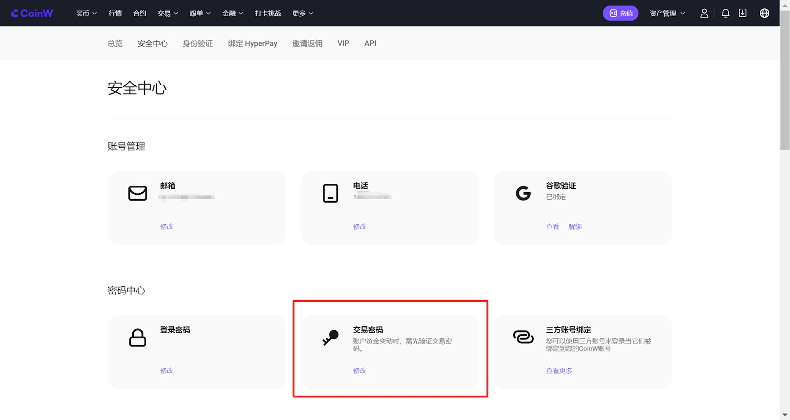 不仅如此,CoinW 还为用户准备了堪称面面俱到、详尽细致的 《操作指南》 ,对涉及到谷歌验证、邮箱手机号管理、ETF 交易以及交易密码设置等安全操作进行了详细说明。其中, 交易密码的设置 为用户账号及资产安全增加了一道“保险锁”,称得上是用心良苦。