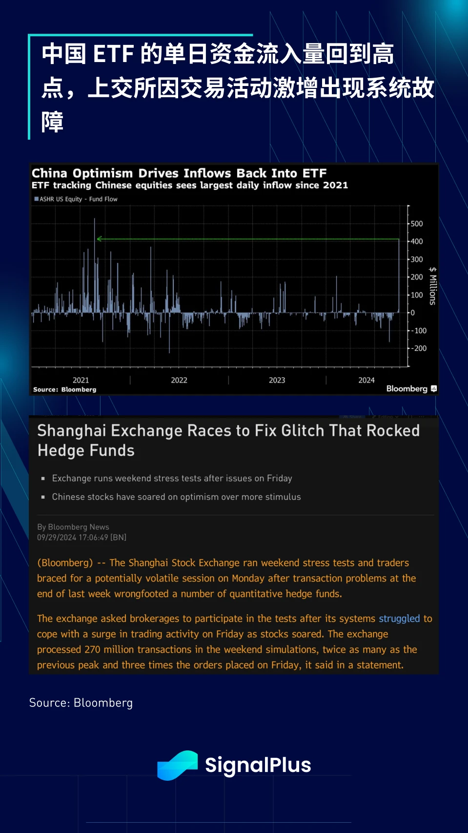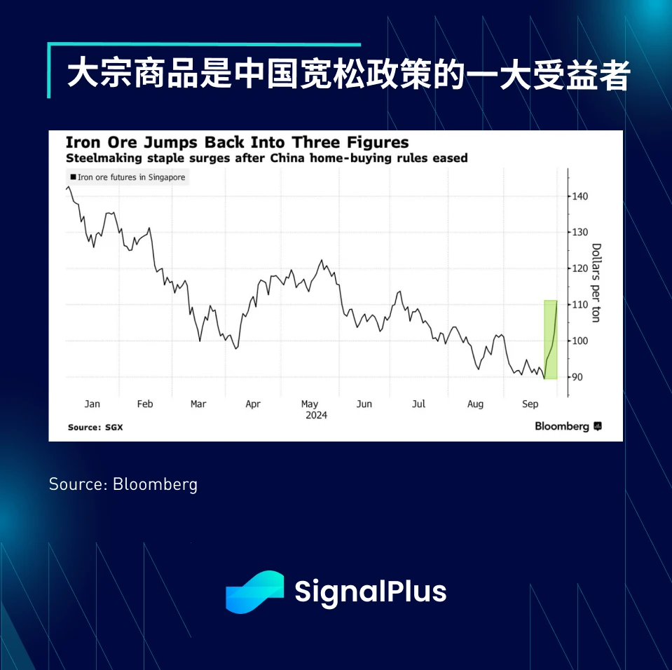 例如,随著中国放宽了购房限制,铁矿石自 9 月尾以来上涨了 20% ,而迅速激增的市场交易活动也导致上交所系统出现故障,同时中国 ETF 的单日资金流入量创下 2021 年以来的最高水平。