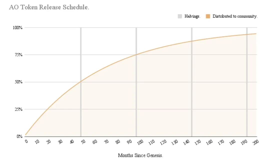 AO 的总代币供应量被设定为 2100 万枚,这一数字与比特币相同,彰显了 ao 的稀缺性。