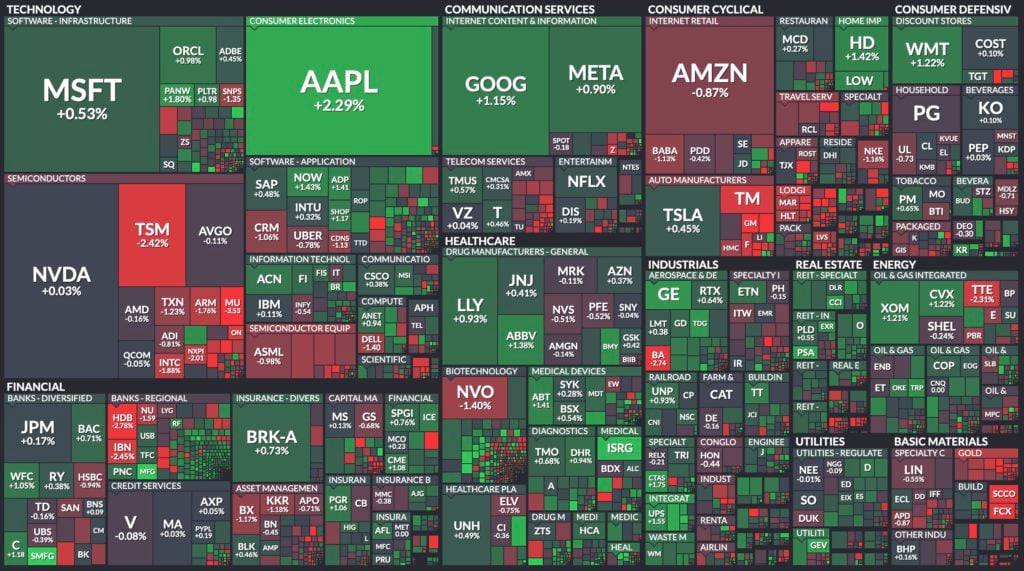 - 道琼工业指数小涨 17.15 点,涨幅 0.04%,至 42,330.15 点