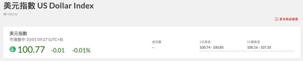 鲍尔浇熄大幅降息预期后,美元指数 走升一度来到 100.86,目前略有下调回到 100.77。