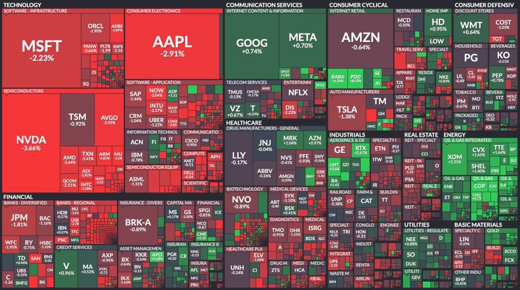 - S&P 500 指数下跌 53.73 点,或 0.93%,收 5,708.75 点。